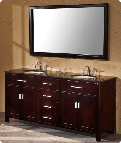 Materials: Solid Wood Aspen Frame w/ Black Galaxy Countertop.Dimensions: Vanity: W 72" x D 22" x H 36".Model: FVN6525BG. The Fresca Hampton Traditional Double Sink Bathroom Vanity is designed for a full size master bedroom or large rest room. It has a worldly feel of type that integrates two huge layout double doorways plus three spacious pull out drawers. The stable Aspen timber frame has a dark cherry finish that is paired with striated white marble or counter tops to your choice of flecked Baltic brown or rich black galaxy granite or creamy honey travertine stone. Pair with an oversize Hampton Traditional Mirror, bought separately.Mirror, Faucet(s), P-traps and Pop-Up Drains are optional and are NOT included in the related fee. DecorPlanet is proud to offer Fresca Bathroom products. Fresca is a quantity one producer of high-quality vanities, accessories, rest rooms, taps, and everything else to provide the freshest lavatory within the regional. Fresca is famous for carrying the latest and hottest types in up to date and up to date lavatory design which are made with prime quality subject matters and superior workmanship.. ... Read more Fresca Hampton Traditional Double Sink Bathroom Vanity w/ Black Galaxy Countertop